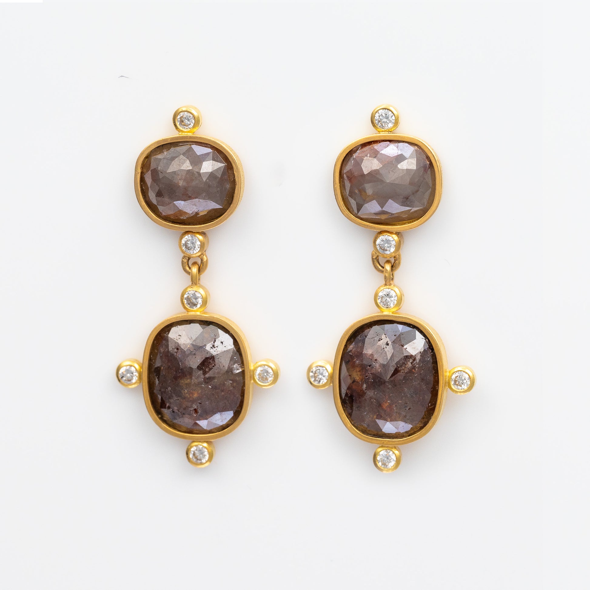 18k Cushion Quatrifoil Raw Rose Cut Diamond Drop Earrings