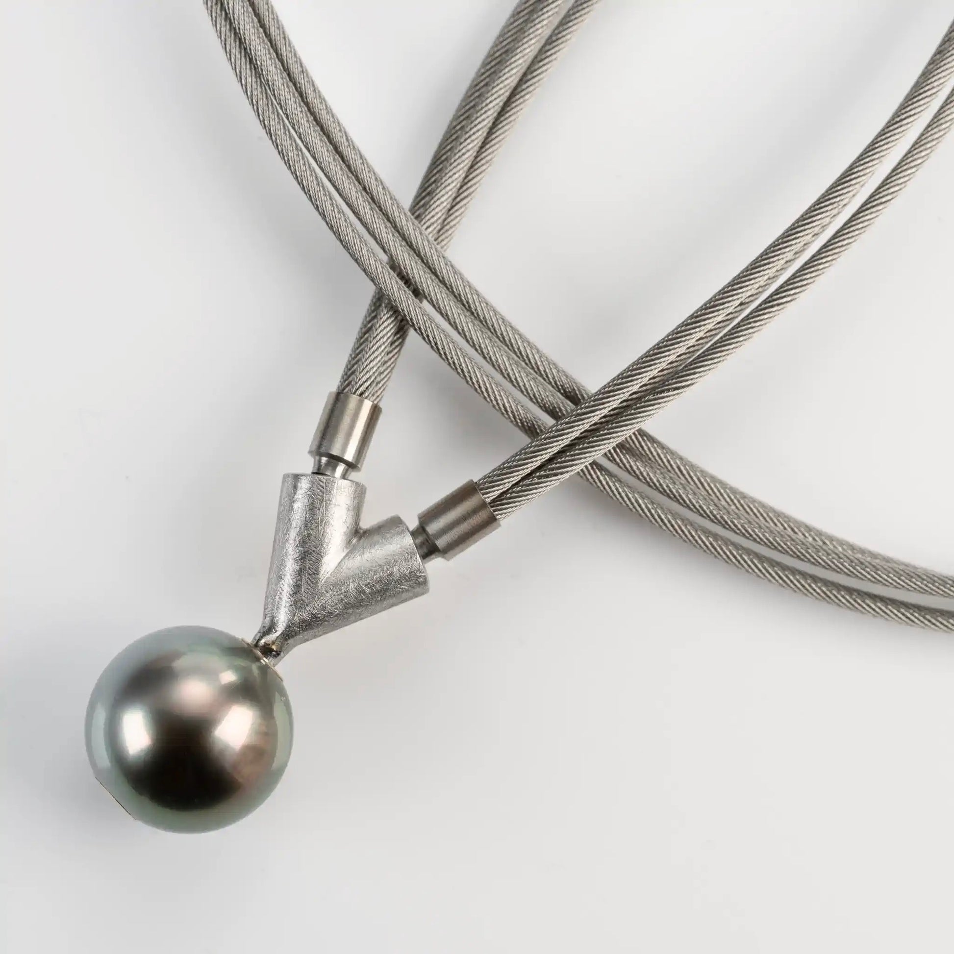 Triple strands of stainless steel wire to mix and match with your Vario collection. Shown here with a "Y" connector and a pearl Vario clasp (all sold separately) to further expand your interchangeable jewelry looks by creating the elongated shape and feel of a pendant.