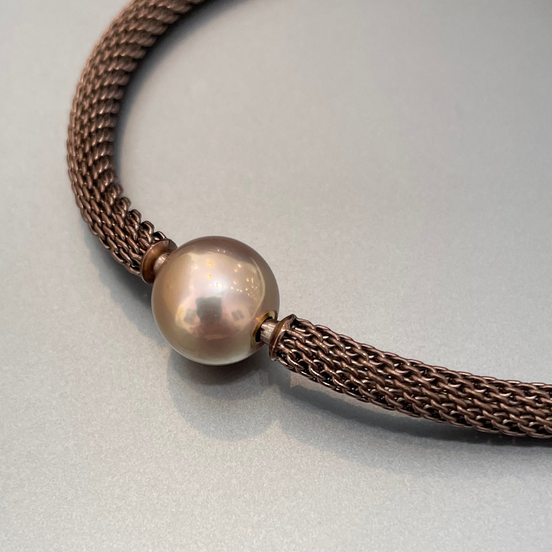 A rich bronze PVD coating on stainless steel mesh for a very durable and versatile finish. Flexible and comfortable to wear, and fun to mix and match with your favorite Vario clasps. 5mm in diameter, 18 inches in length.
