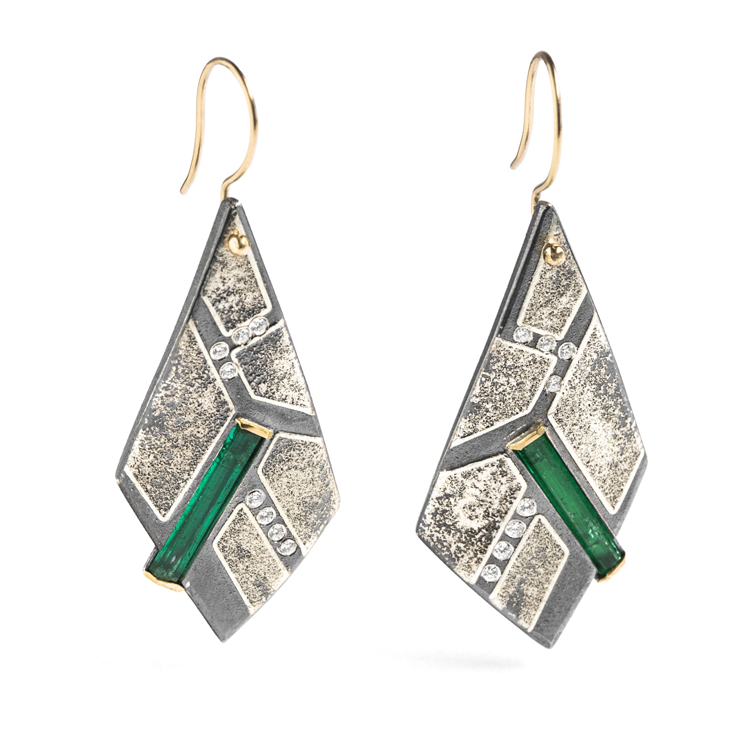 Patterned Earrings with Emeralds and White Diamonds by Atelier Zobel
