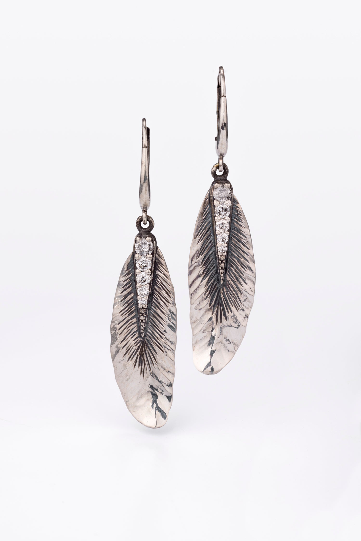 100% reclaimed/refined sterling silver earrings with silvery-white diamonds (0.38 ctw) responsibly mined in Australia. Overall length 1.8 inch.