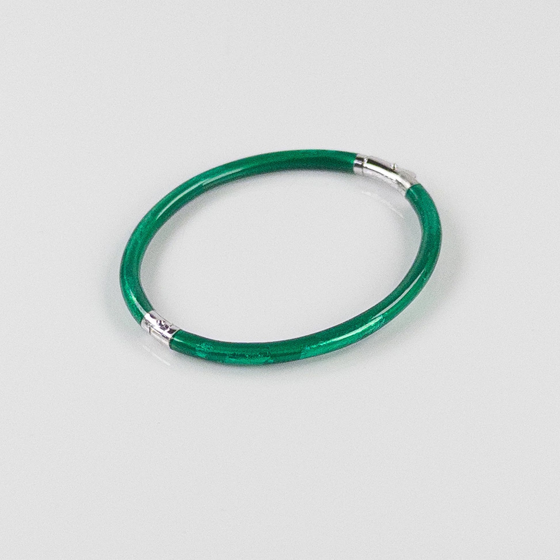 SOHO 3mm Sterling Silver and Emerald Green Foliage Enamel Bracelet