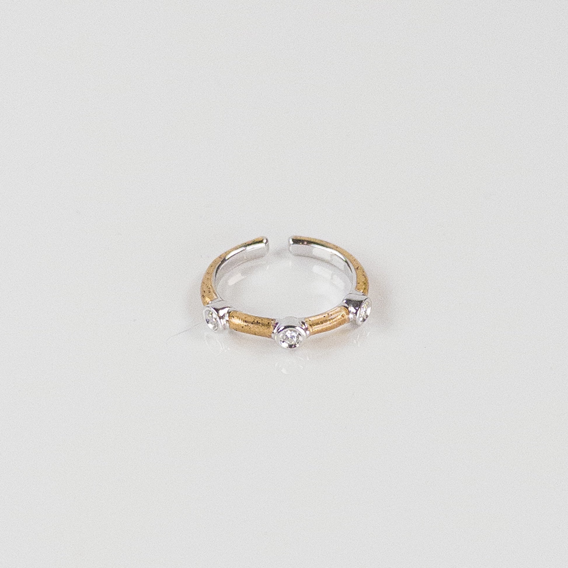 SOHO Sterling Silver and Gold Enamel Ring with Three Diamonds (0.09ctw)