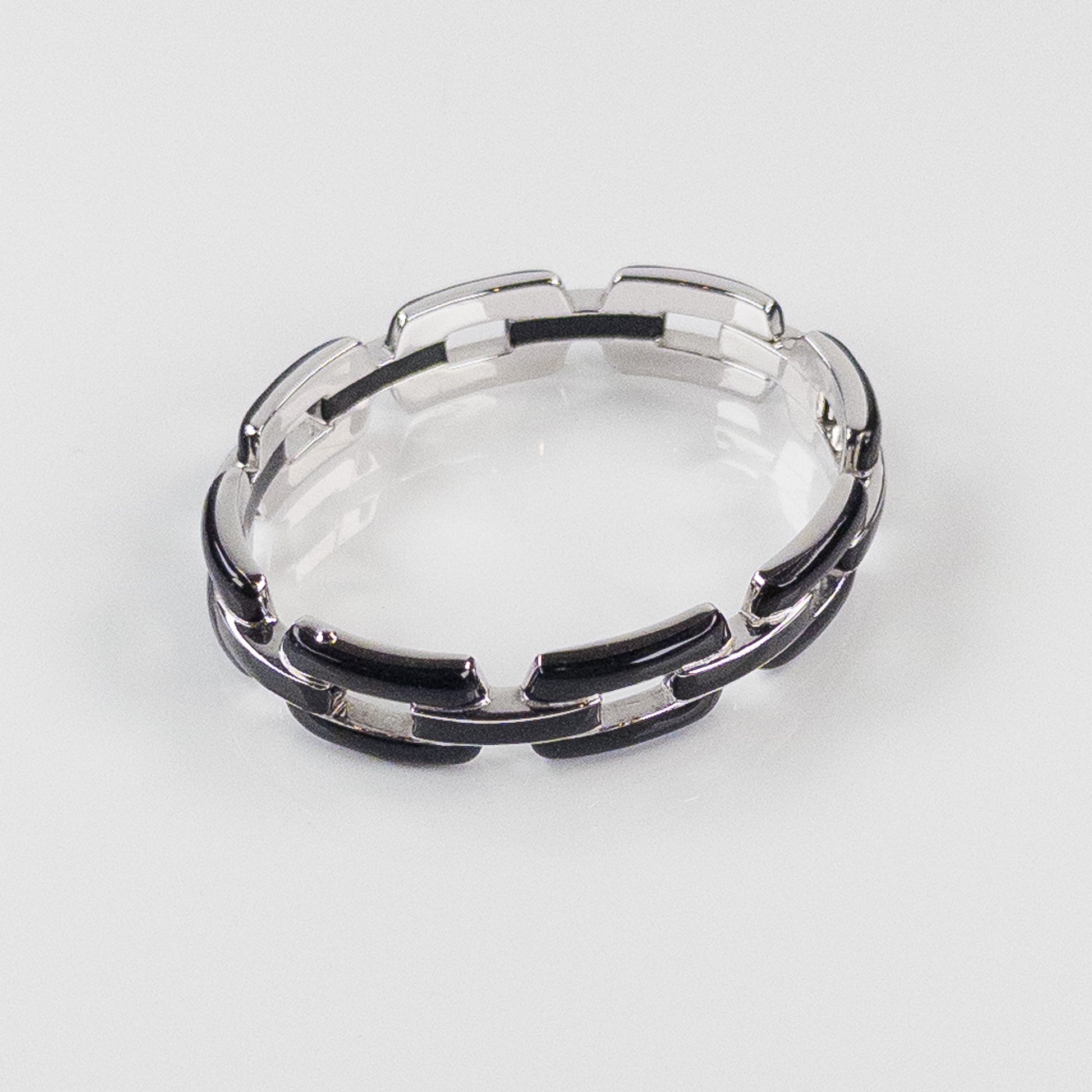 SOHO Sterling Silver and Black Enamel Chain Link Hinged Bangle Bracelet