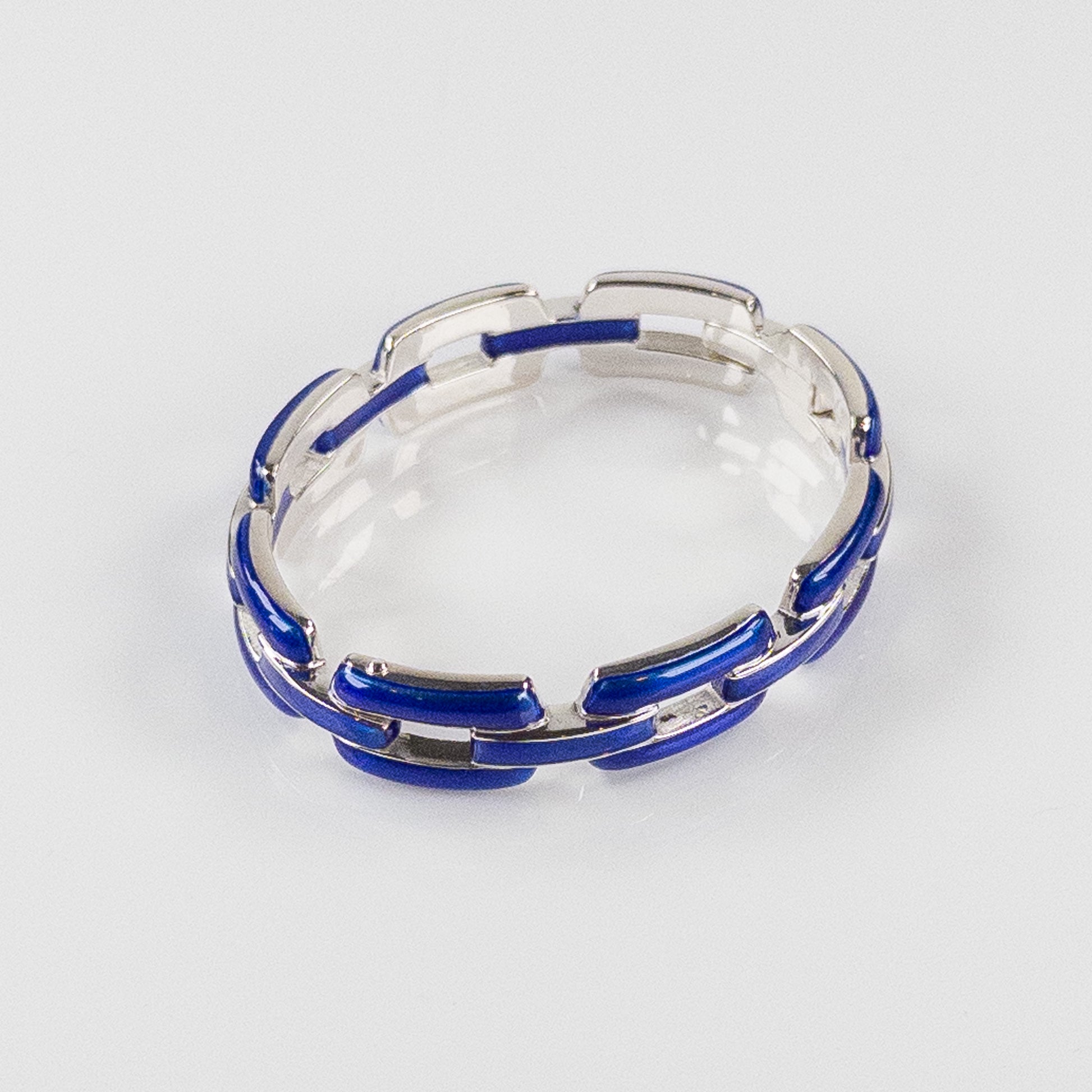 SOHO Sterling Silver and Cobalt Blue Enamel Chain Link Hinged Bangle Bracelet