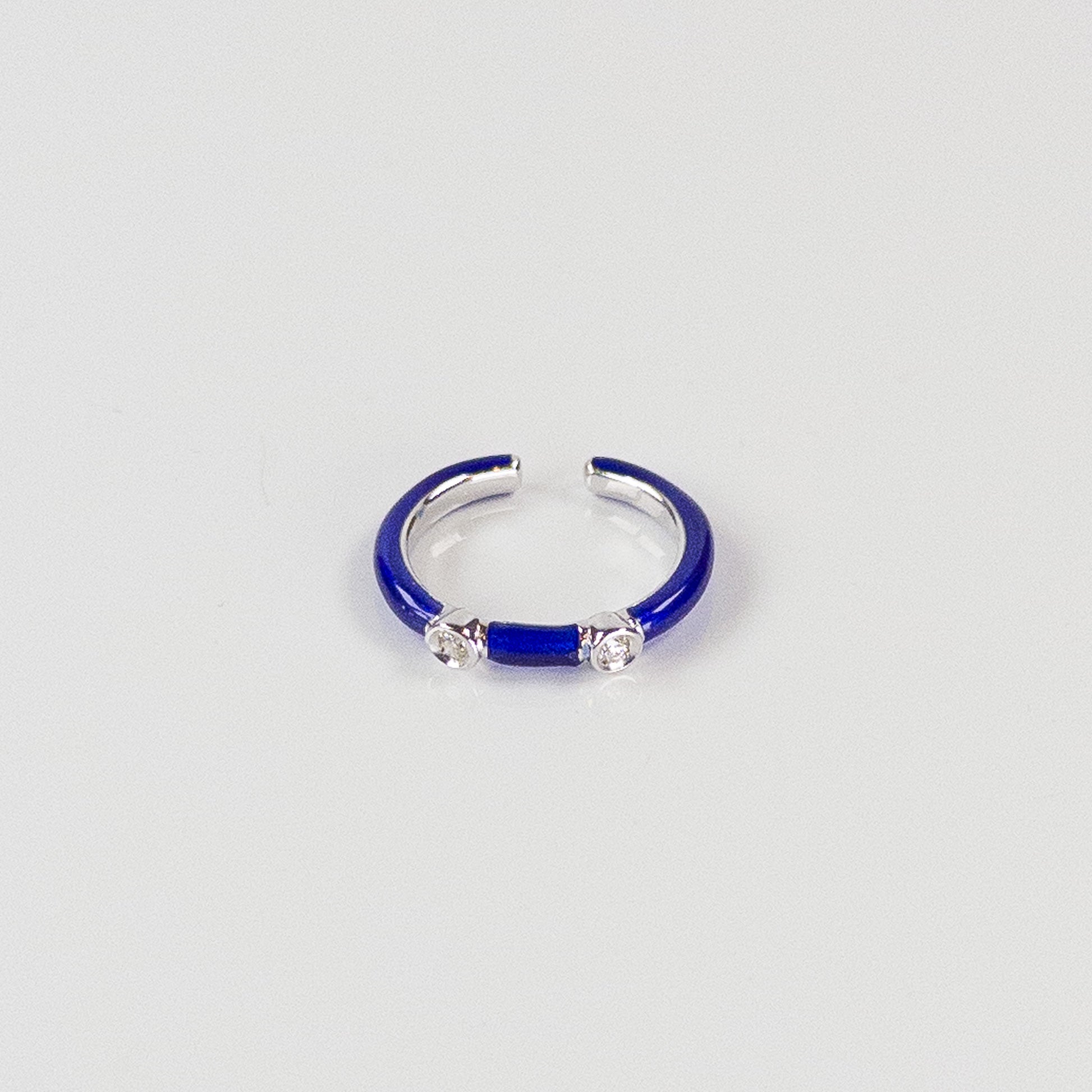 SOHO Sterling Silver and Cobalt Blue Enamel Ring with Two Diamonds (0.06tcw)