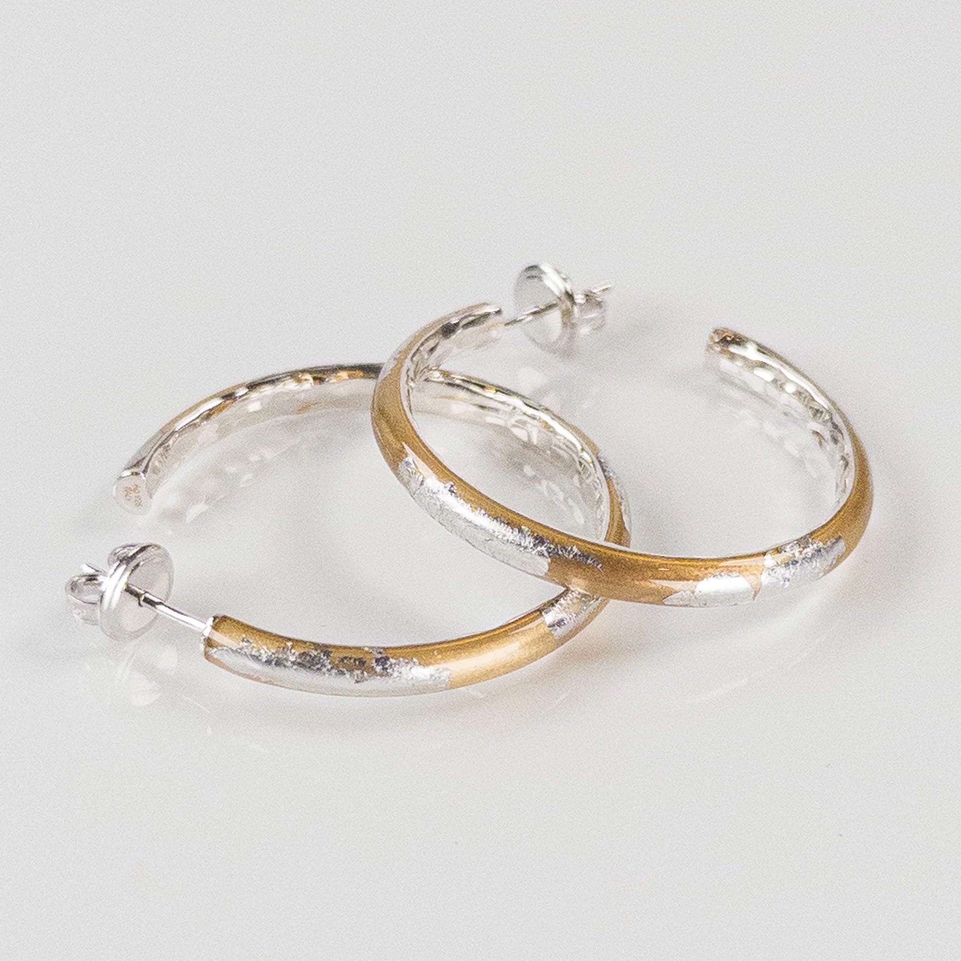 SPECIAL ORDER AVAILABLE - SOHO Sterling Silver and Gold Foliage Enamel Post-Style Hoop Earrings with Hammered Detail (Medium)