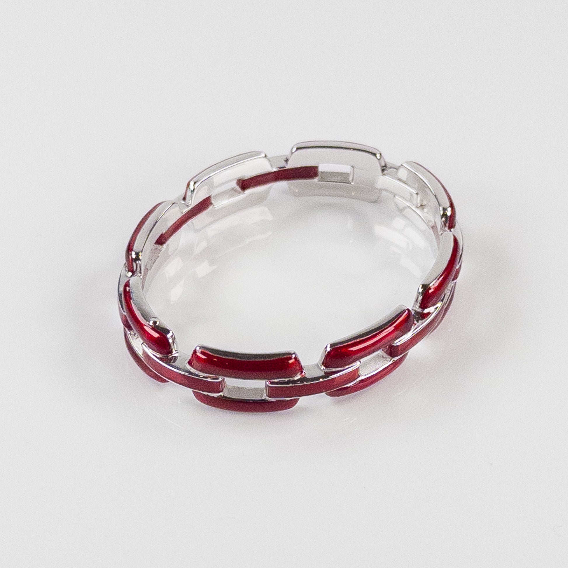 SOHO Sterling Silver and Ruby Red Enamel Chain Link Hinged Bangle Bracelet