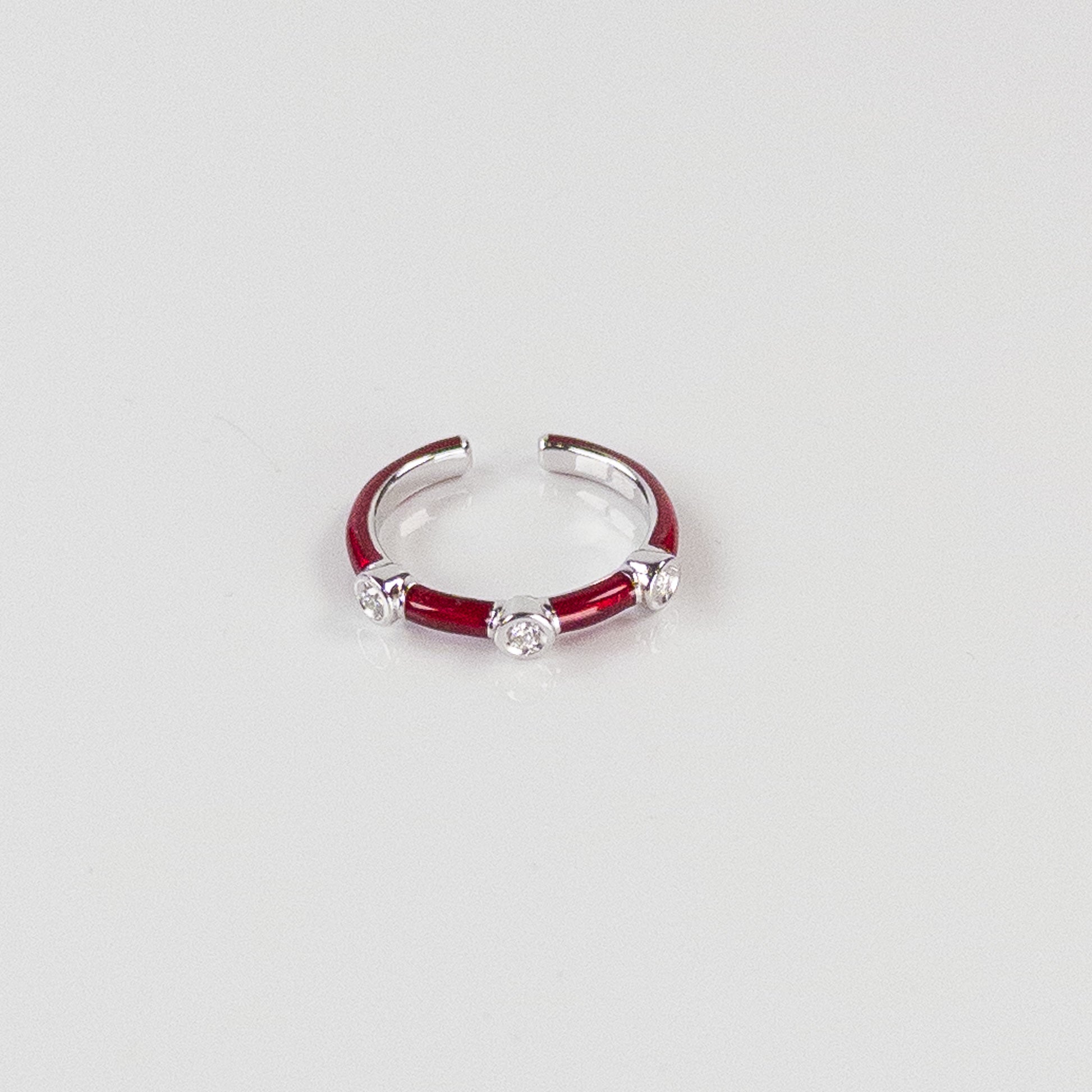 SOHO Sterling Silver and Ruby Red Enamel Ring with Three Diamonds (0.09ctw), Size 7