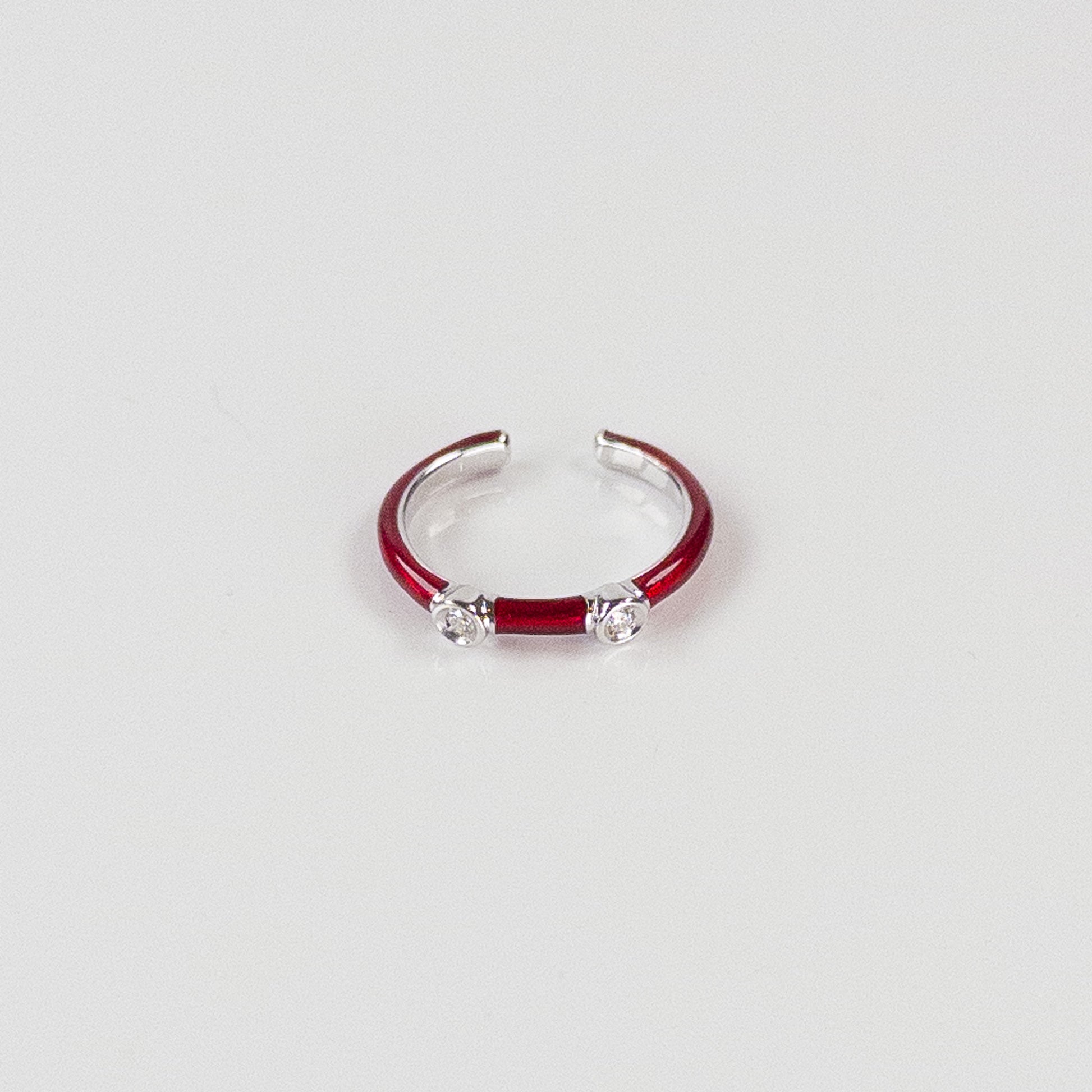 SOHO Sterling Silver and Ruby Red Enamel Ring with Two Diamonds (0.06ctw), Size 6.5