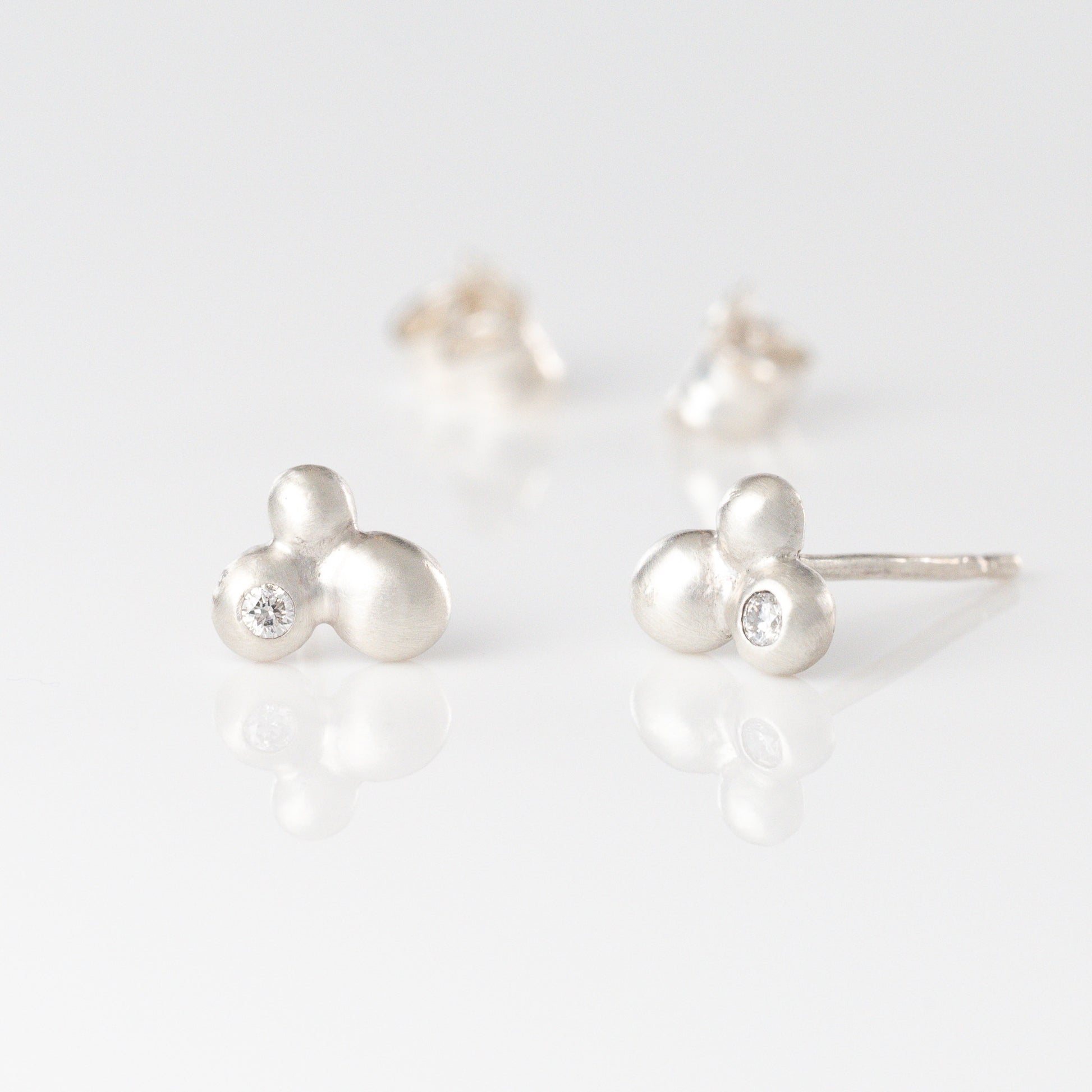 Sterling Silver Pebble Stud Earrings With Diamond Accents